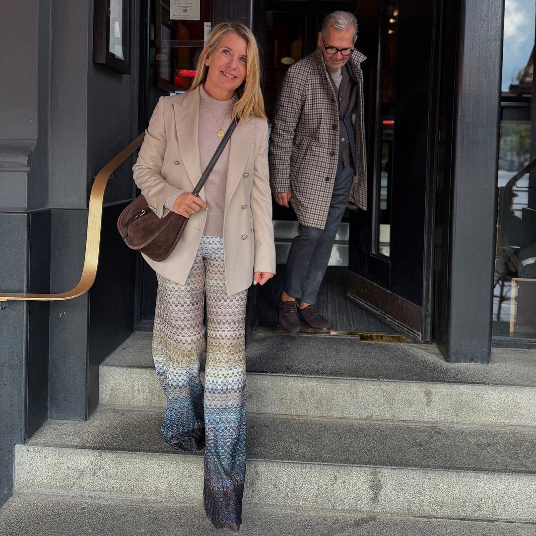 Hos Bindesbøl fører vi både løse bukser og mere figursyede modeller fra Missoni – alle med den samme genkendelige æstetik og luksuriøse følelse.