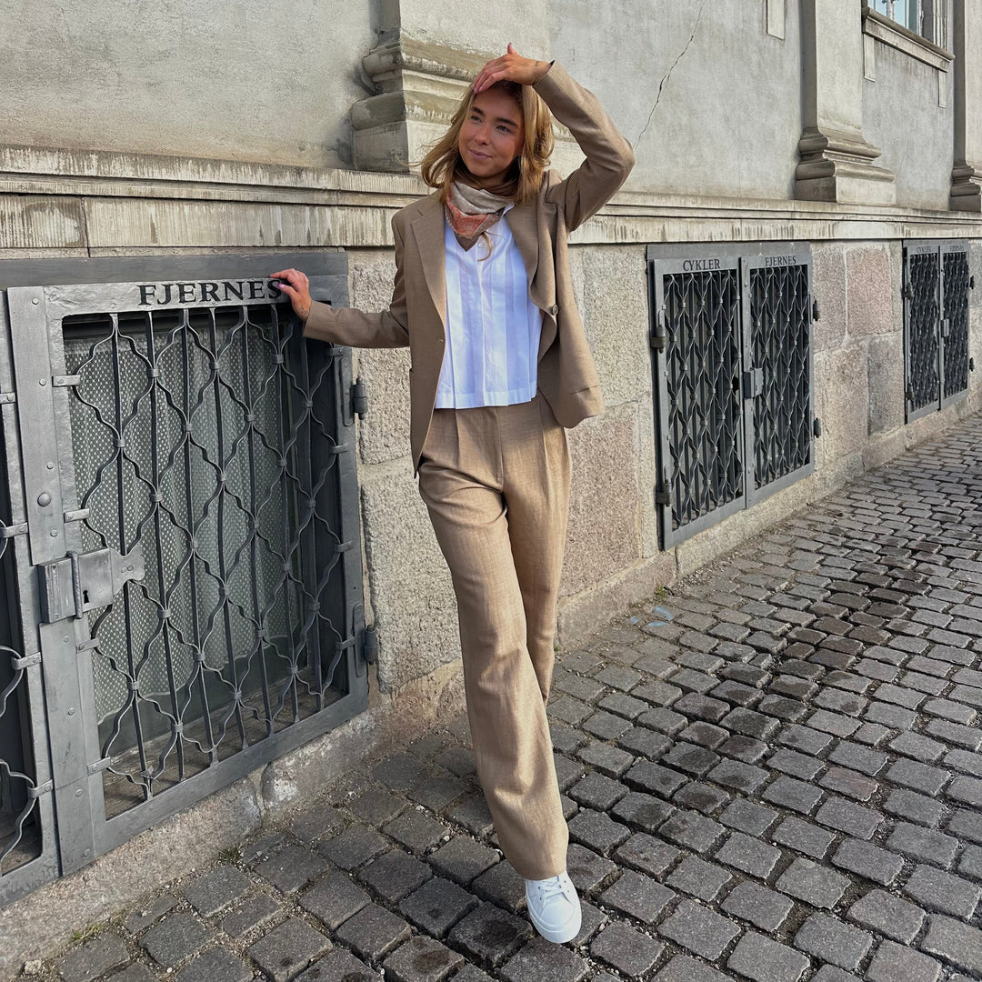 Løse bukser er blevet en ny garderobeklassiker, fordi de forener elegance og lethed. Den rigtige model har et stof med vægt og et jævnt fald, så benet får bevægelse uden at miste form. Vi fører løse bukser i glatte uldmixer til arbejdsdage og i mere flydende kvaliteter, der gør sig lige så godt ved middage som i weekenden. Når taljen sidder, hvor den skal, og benet får lov at falde, opstår det lange, rolige udtryk, som gør de løse snit så klædelige. Til kontoret vælger mange en lækker skjorte eller en tynd strik og en kortere blazer for at holde proportionerne. Til fridage fungerer en T-shirt og en kort jakke perfekt, og til aften kan en silkeskjorte og en hæl gøre looket sofistikeret på et sekund. Uanset stil foretrækker vi modeller, der rammer balancen mellem komfort og struktur, så bukserne holder hele dagen.
