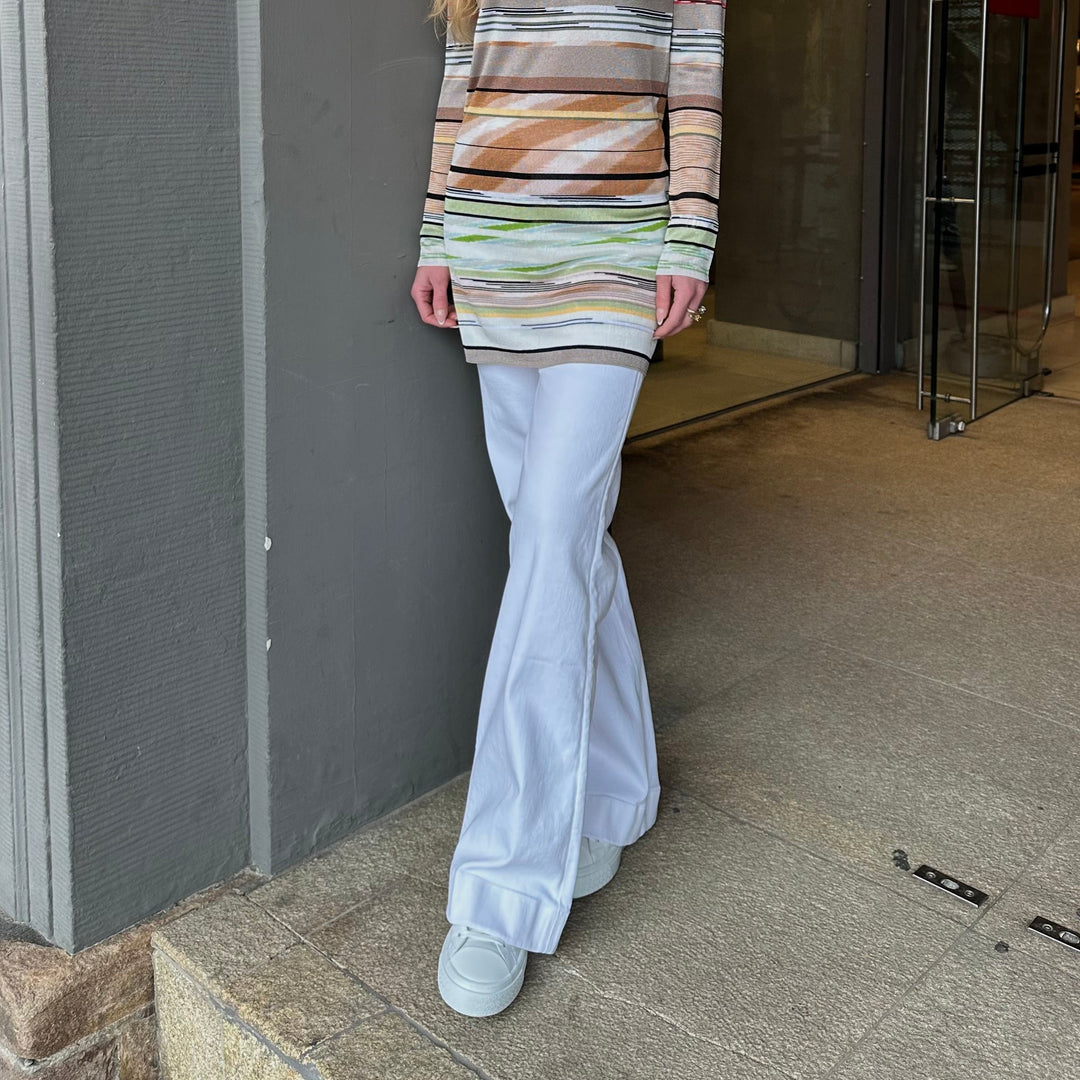 Vores sortiment af bukser til damer er lille men gennemarbejdet. PT Torino leverer det præcise skrædderi med rene linjer og arbejdssikre kvaliteter. Etro står for rige farver og teksturer, der føles luksuriøse uden at blive prangende. Zimmermann og Missoni tilbyder feminine silhuetter og smukke stoffer med naturligt fald. Mother og Jacob Cohën dækker premium denim, fra straight og slankt til blød, moderne vidde. Og når kun det allerfineste er godt nok, giver Brunello Cucinelli diskret luksus og materialer i topklasse. Hver model er valgt, fordi den gør sig bemærket på kroppen – ikke på stativet.