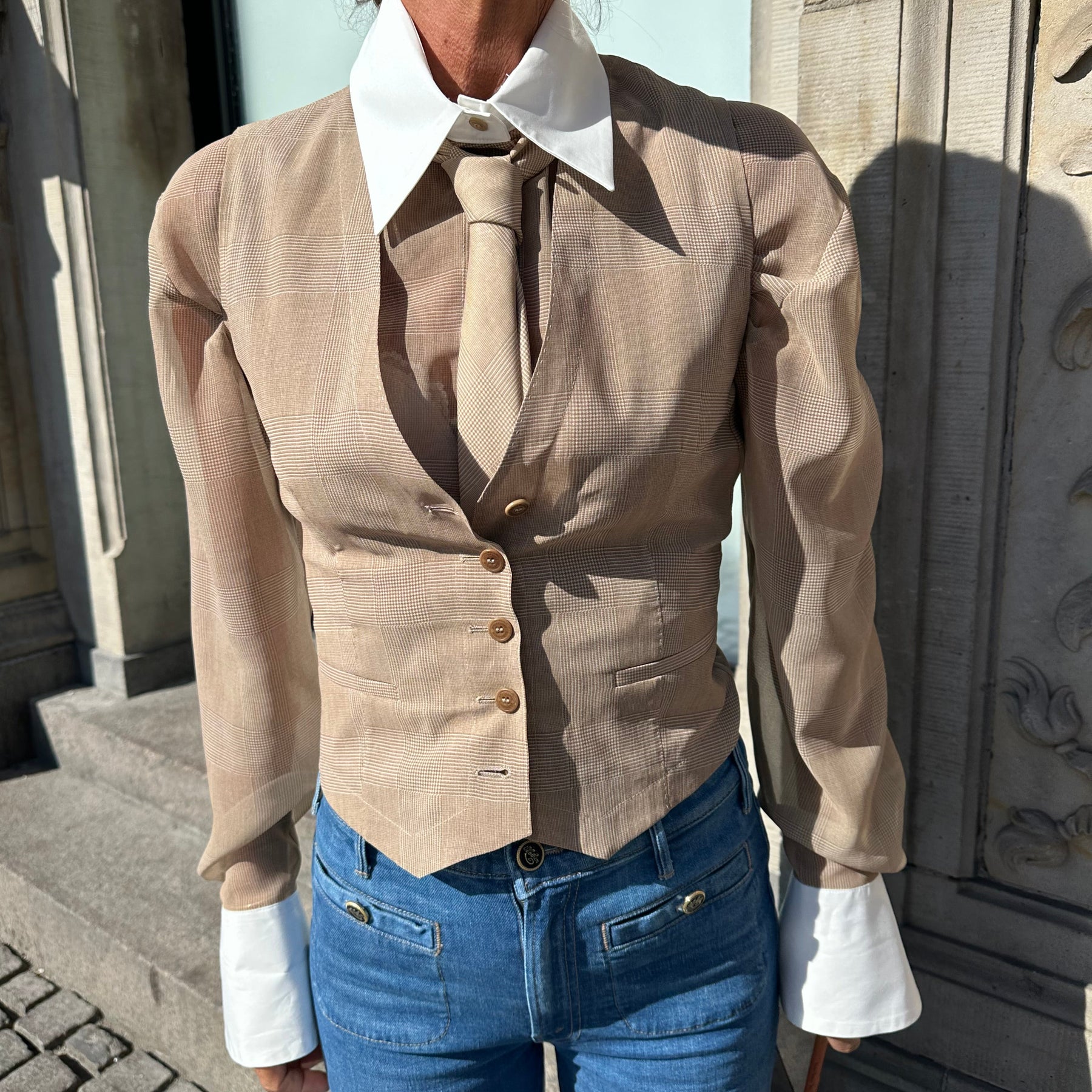Taljeret og ternet crepon chiffon vest med en flatterende silhuet