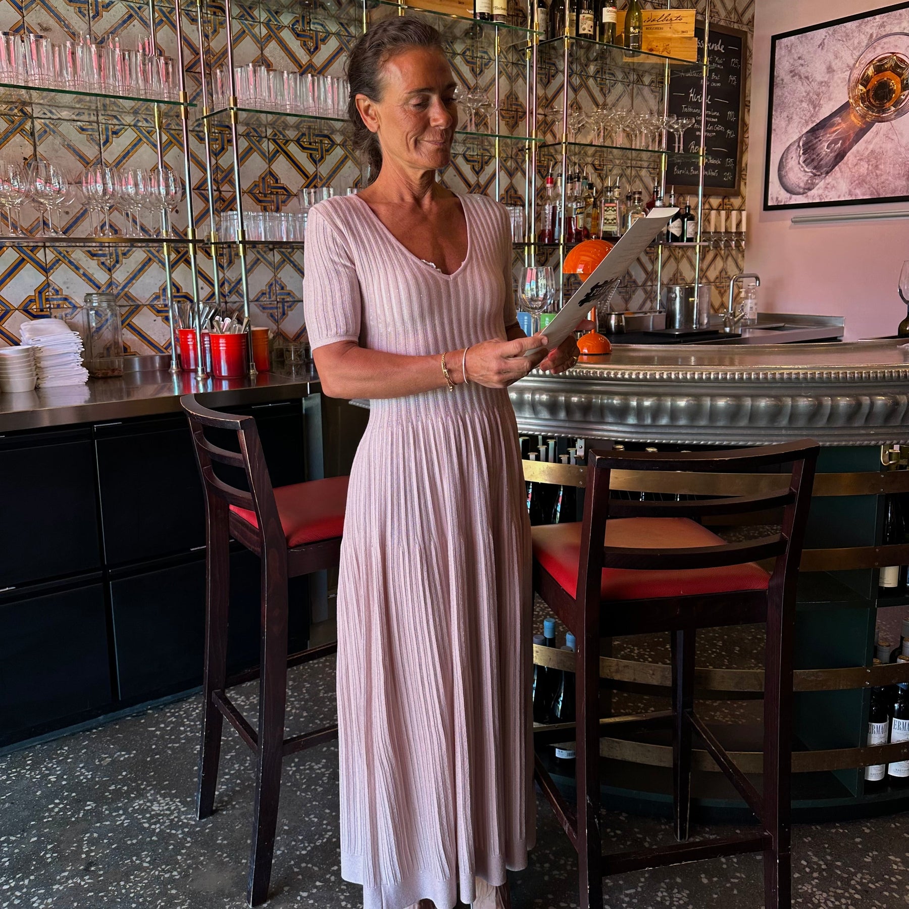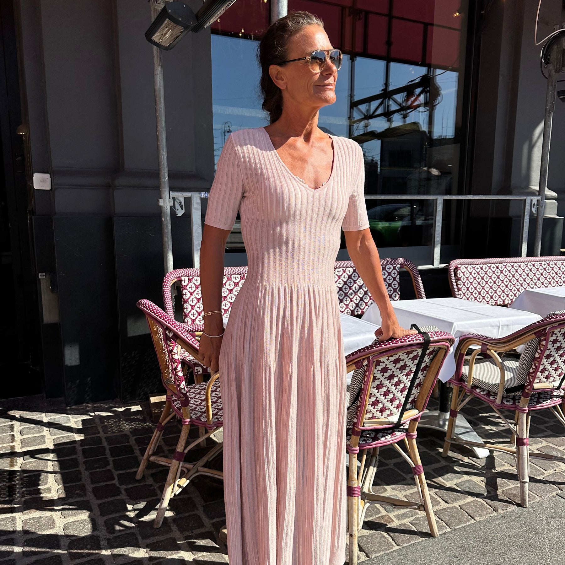 Ginestra-kjole med V-hals i ikonisk Valenti-kvalitet, smukt udsmykket med en raffineret mængde pailletter.