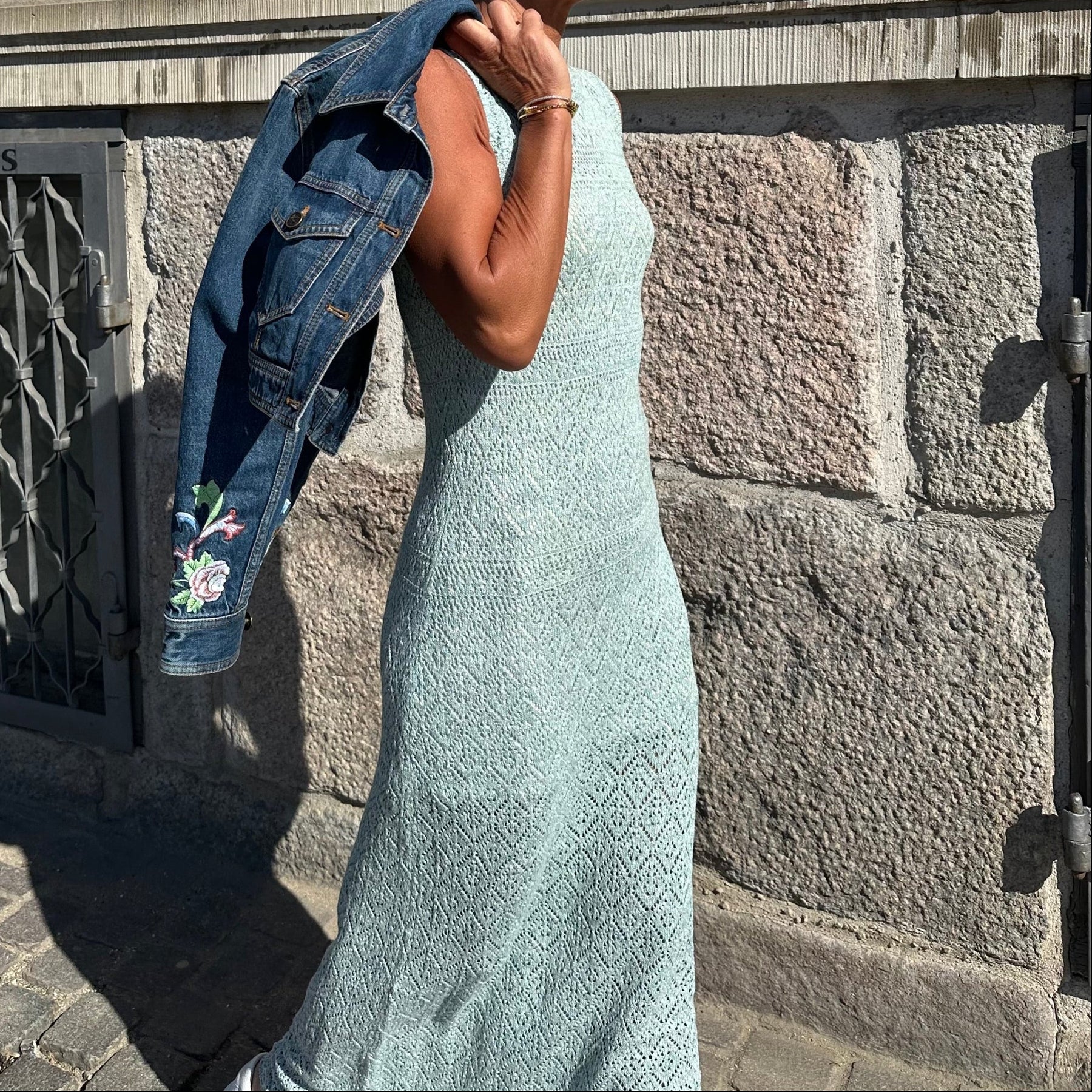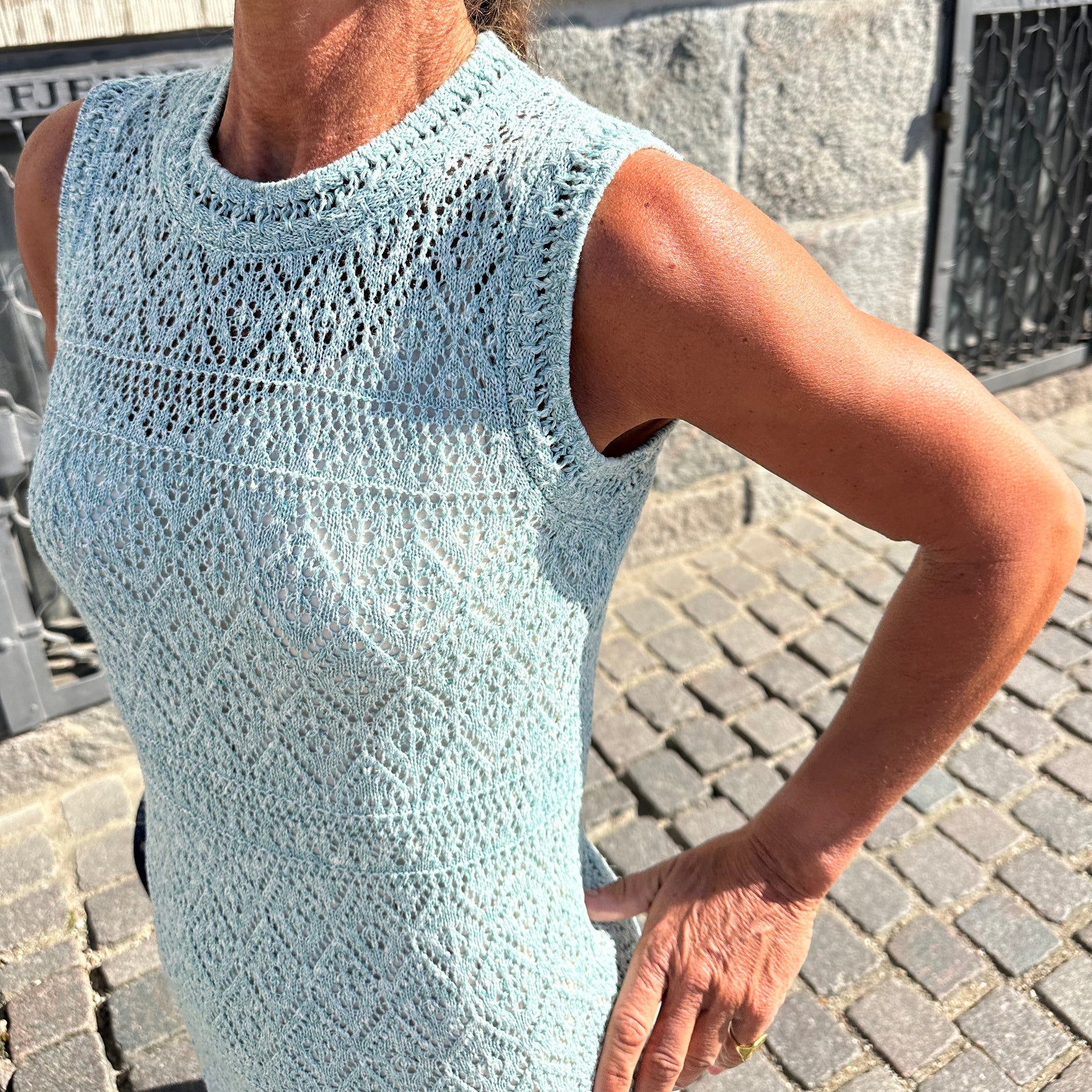 Ærmeløs maxi strikkjole i let sommerkvalitet og crewneck udskæring (med tilhørende underkjole)