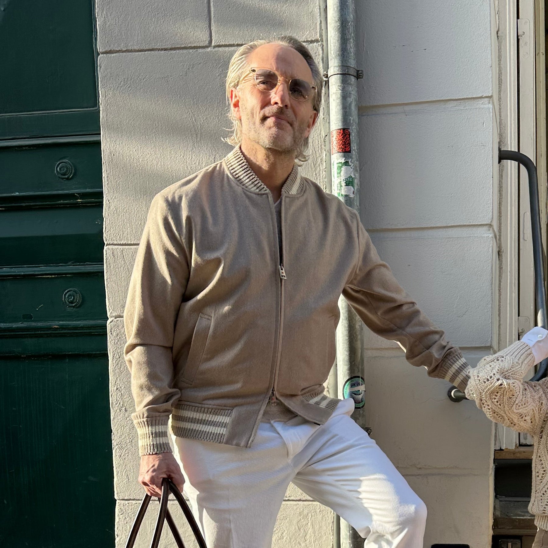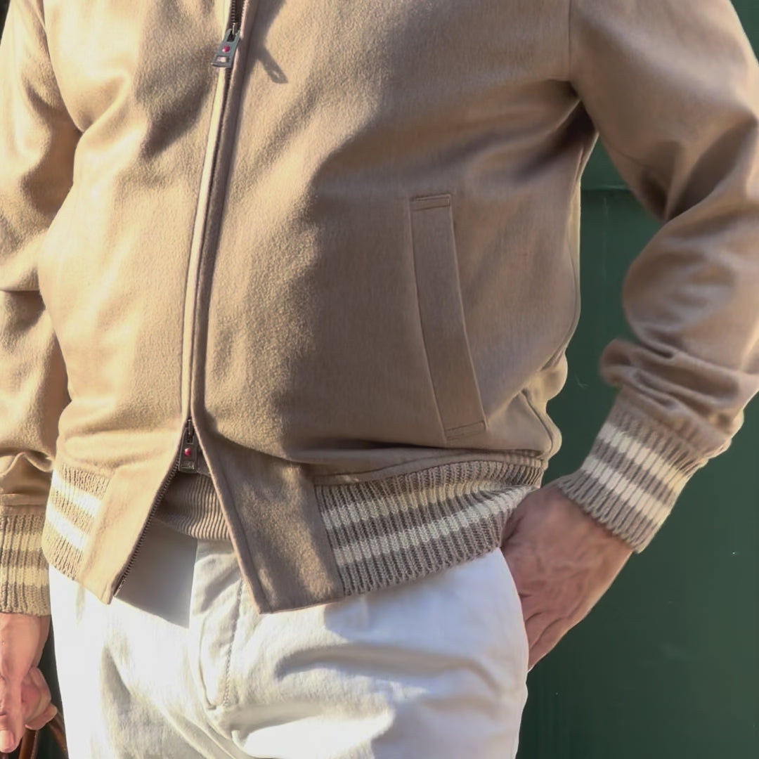 Cashmere bomberjakke med ribkant og lommer