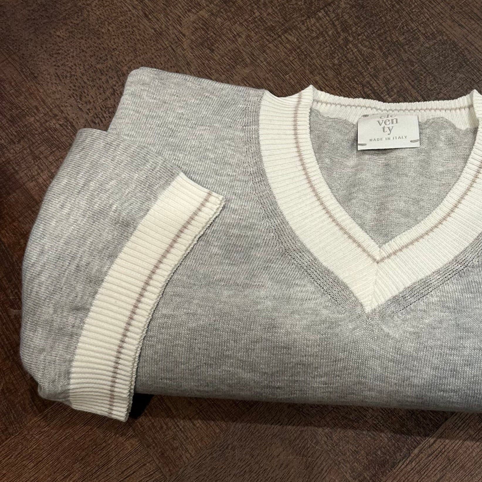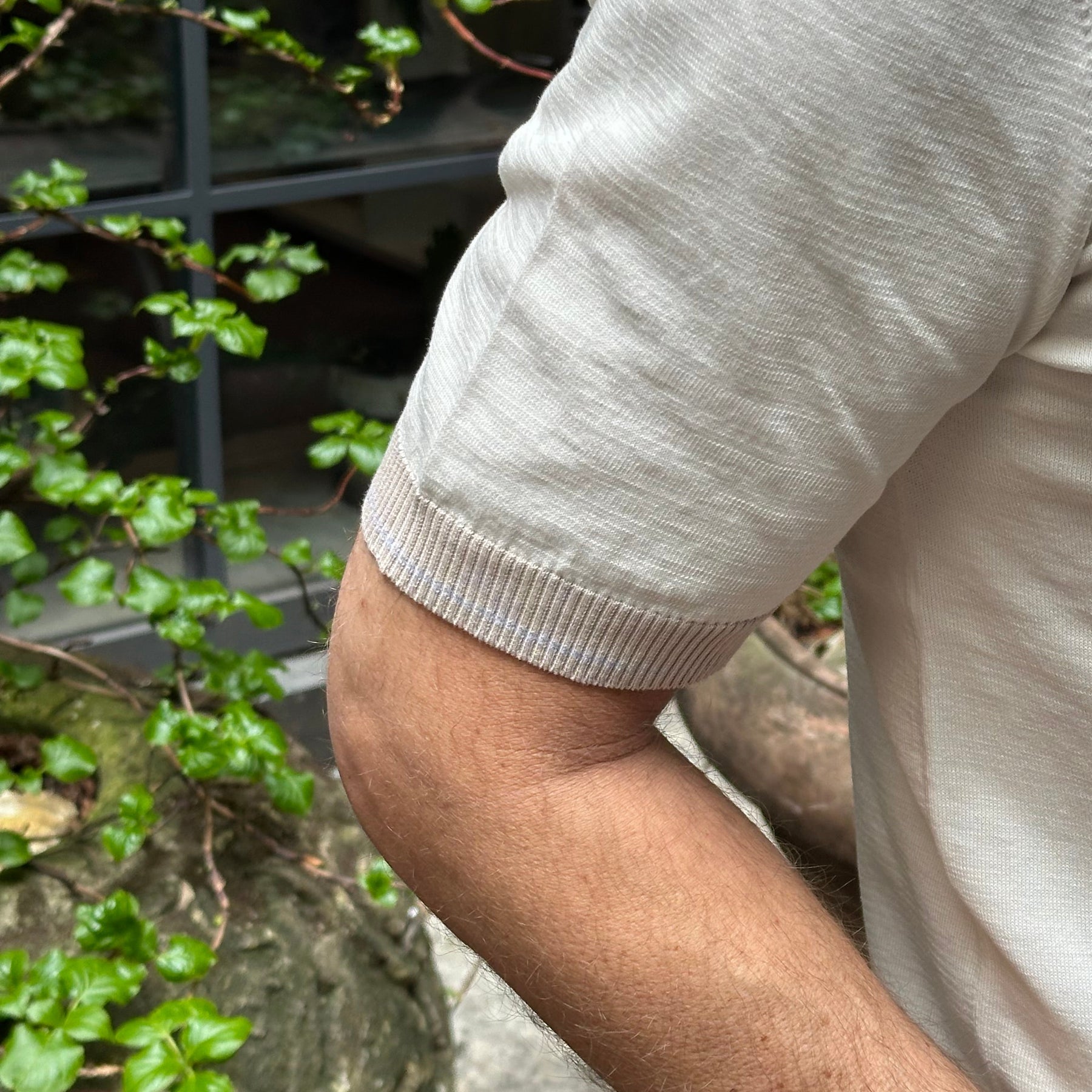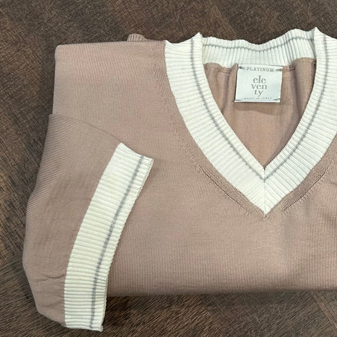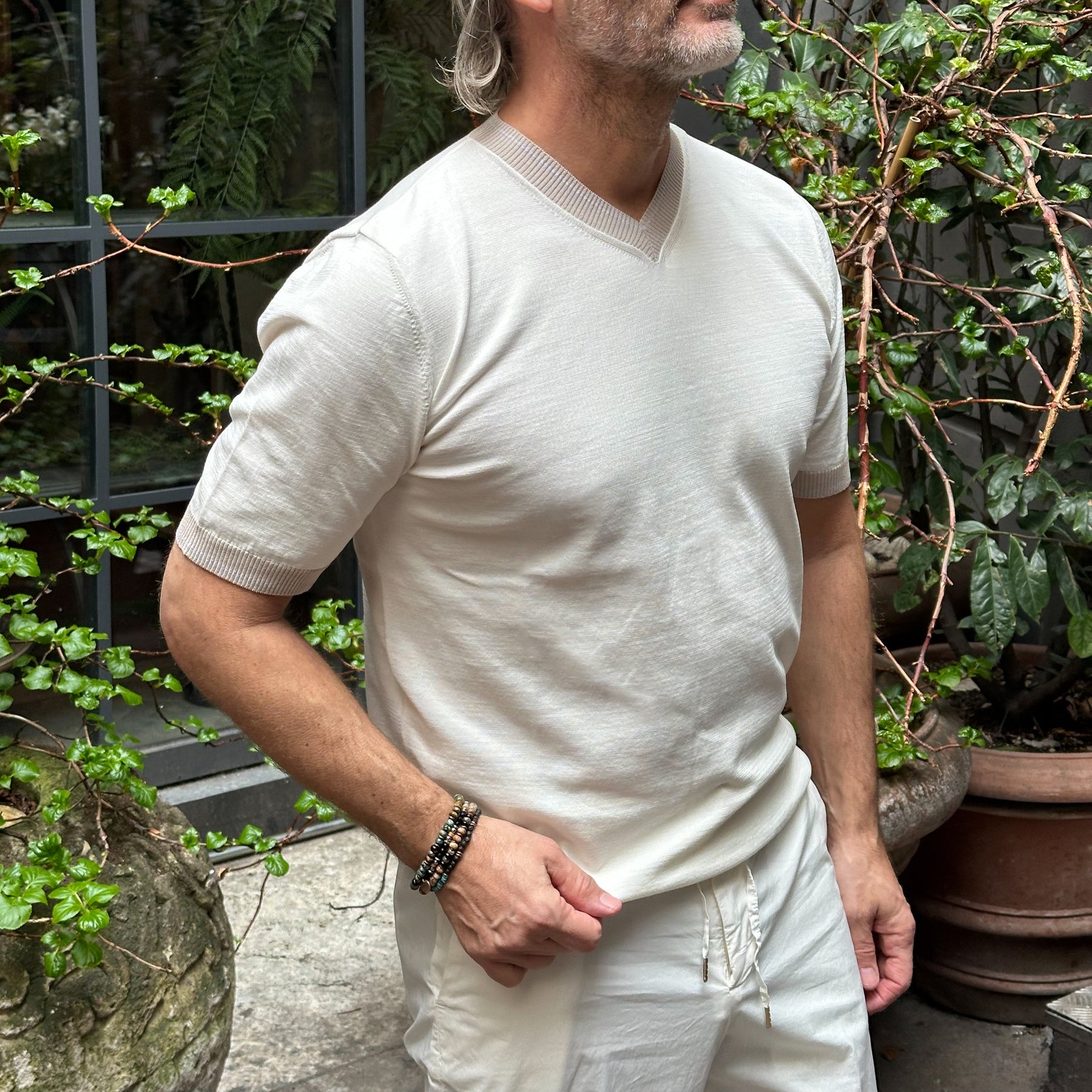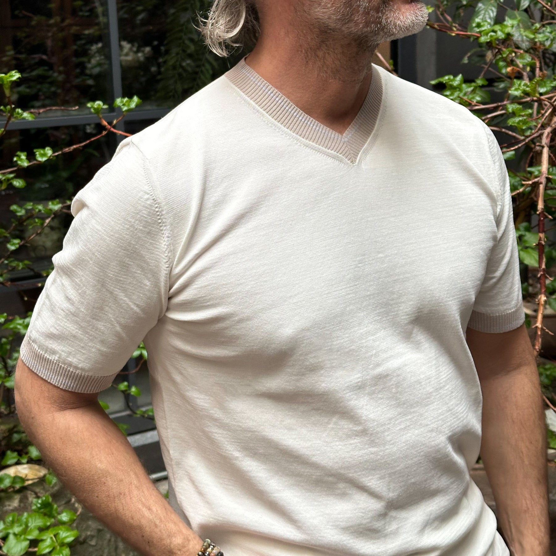 T-shirt i bomuld med høj v-hals og ribstrik detaljer