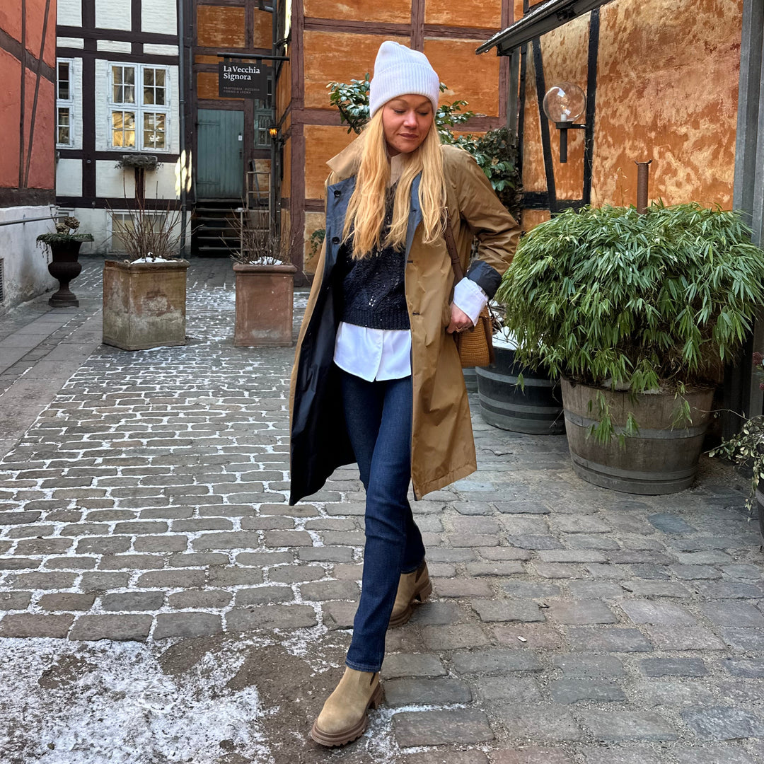 For en damefrakke er materialets fald og holdbarhed særligt vigtigt. Uldfrakker med en tæt vævning holder formen over tid og patinerer smukt med brug. Samtidig bidrager materialernes naturlige egenskaber til komfort og funktion, så frakken kan bruges dagligt uden at miste sin relevans. Hos Bindesbøl er der fokus på materialer, der ældes med ynde og understøtter tanken om færre, men bedre valg.