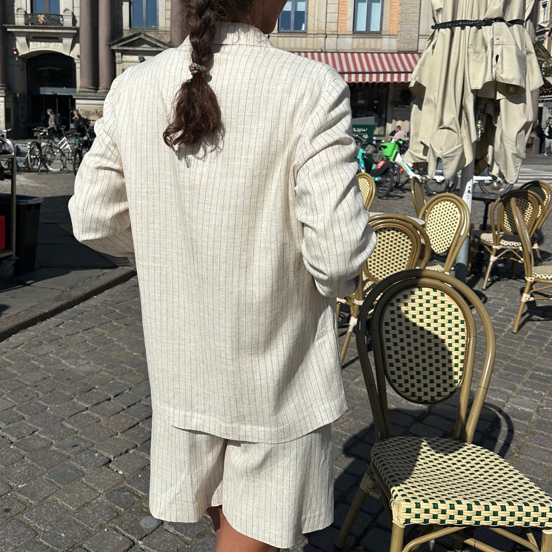 Uforet og dobbeltradet blazer i blød viskose-/hørkvalitet