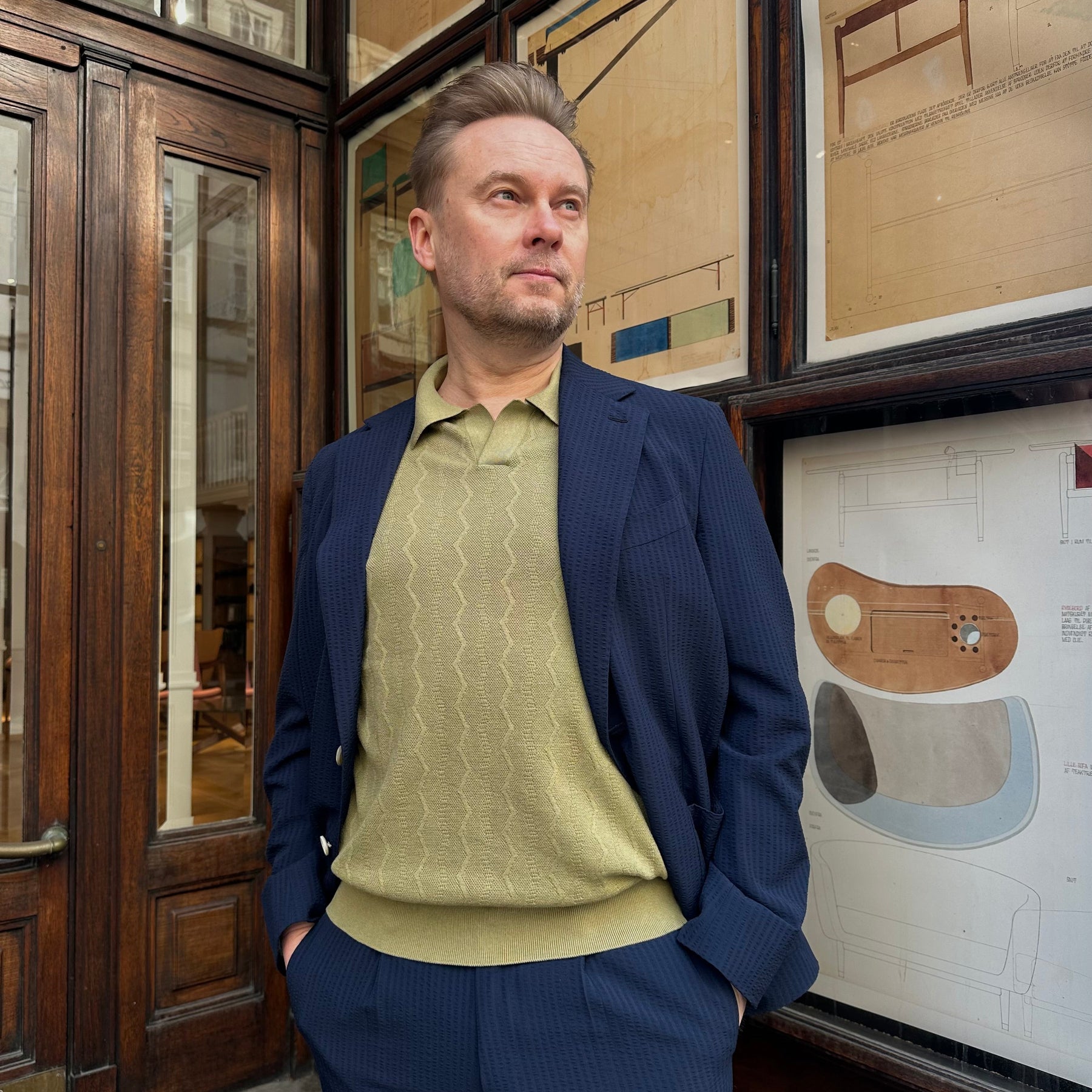 Kortærmet polo i struktureret silke-/bomuldkvalitet
